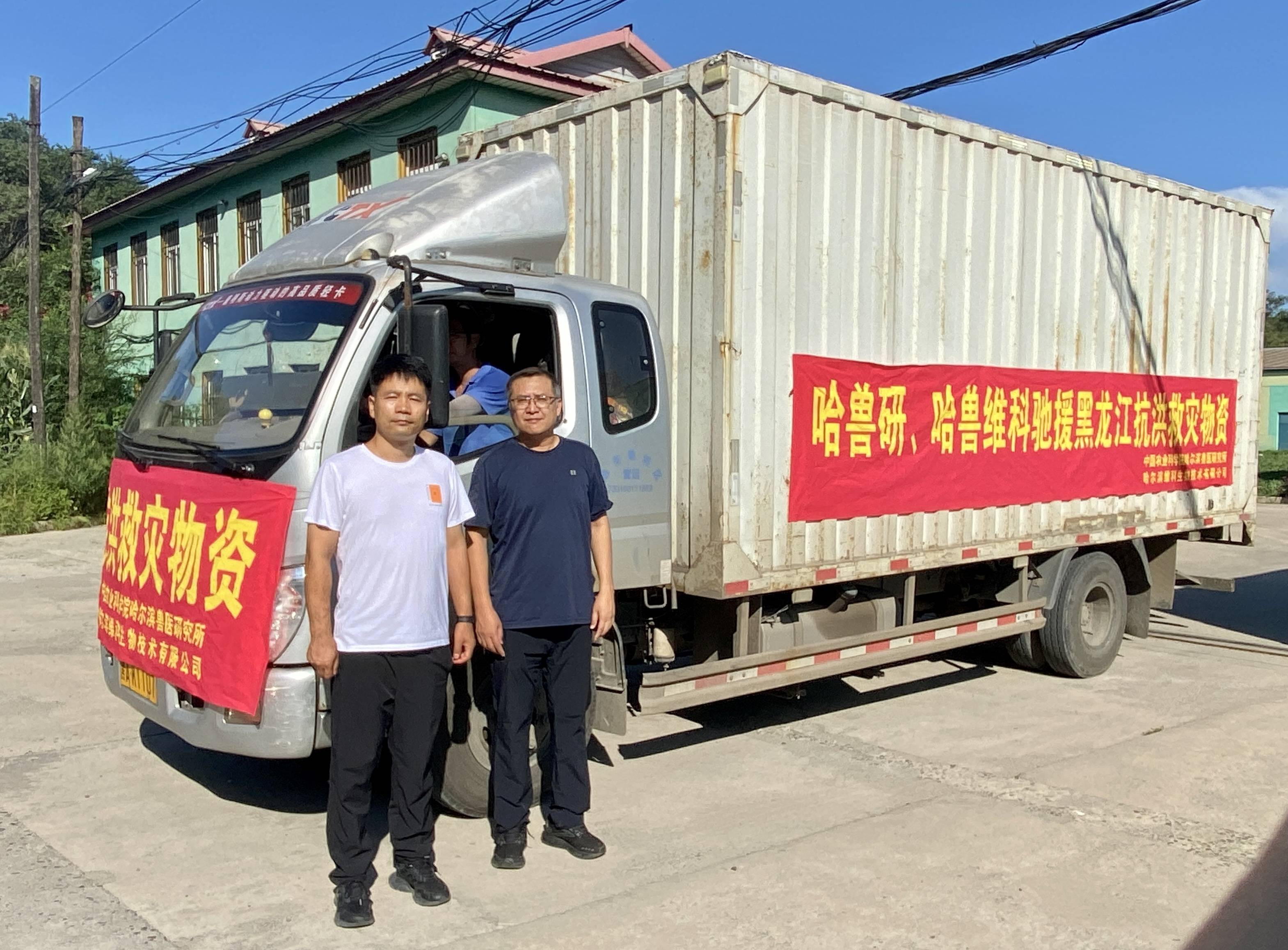 捐赠救灾物质。哈兽研供图