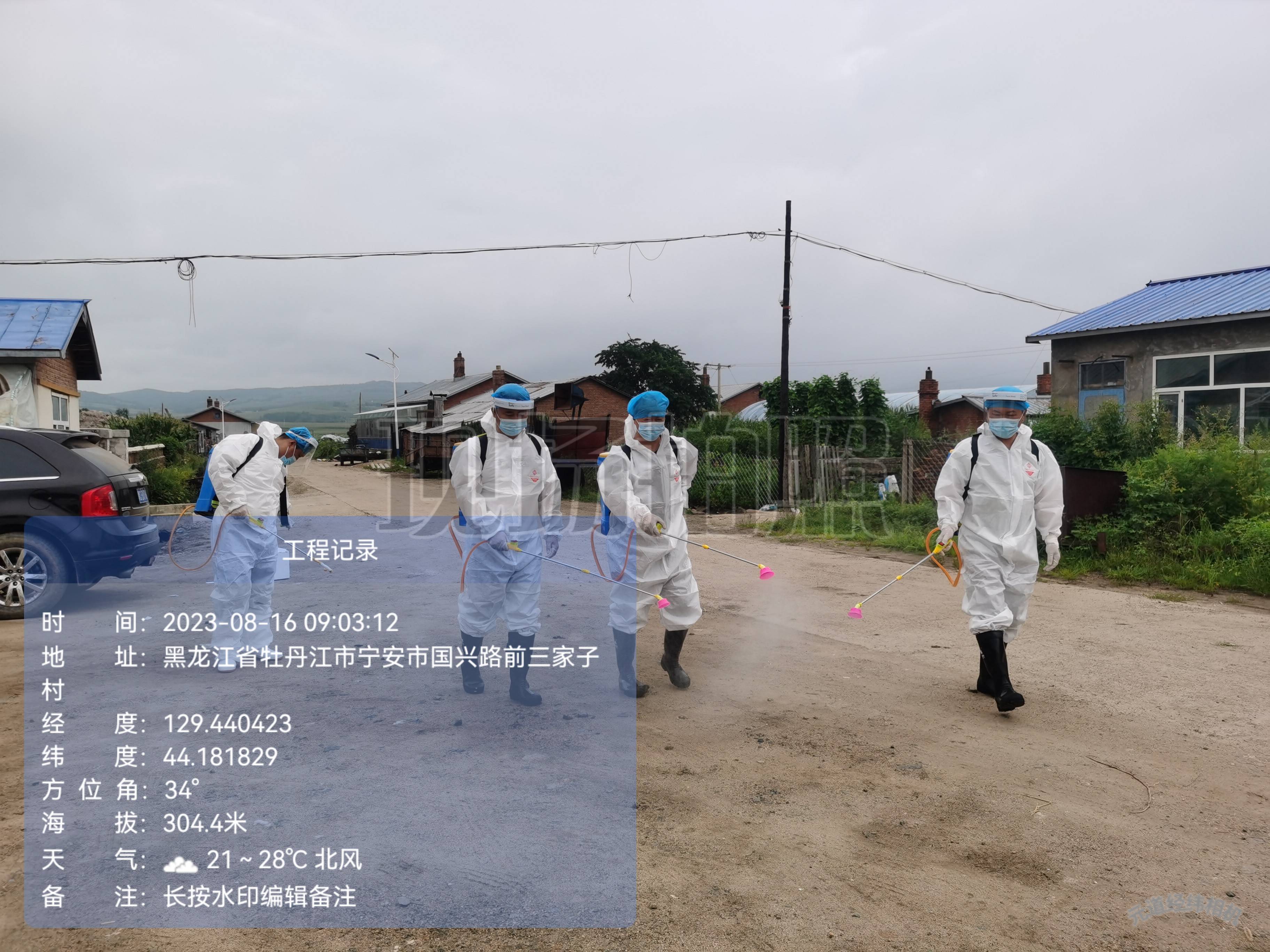 宁安市卧龙乡前三家村灾后消毒。褚海燕摄
