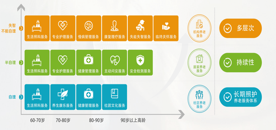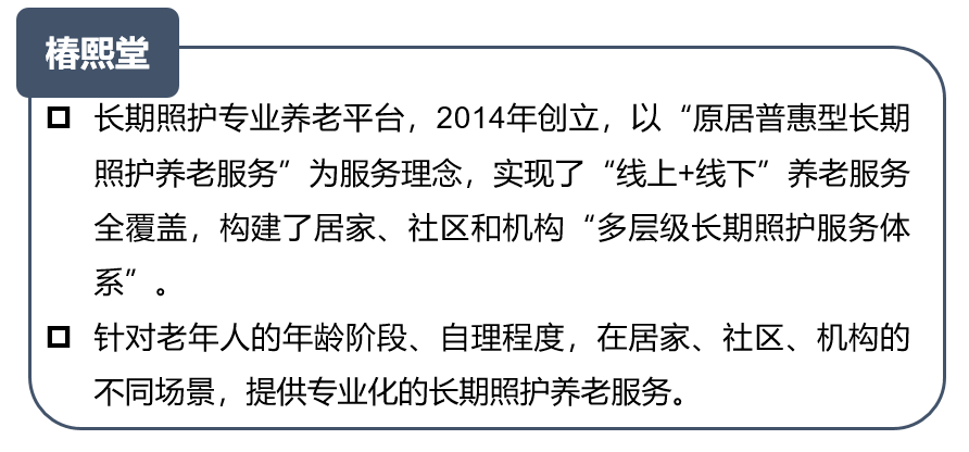 专注于长期照护等轻资产型业务,发展多层级长期照护服务体系,实现线上和线下养老服务全覆盖。