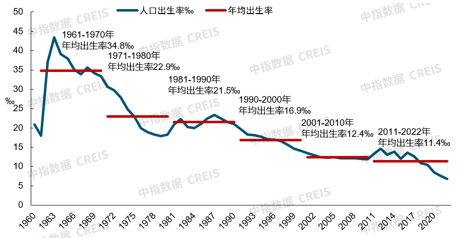 图:1960-2022年我国人口出生率变化情况(‰)