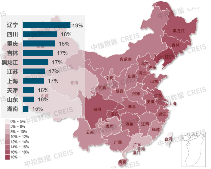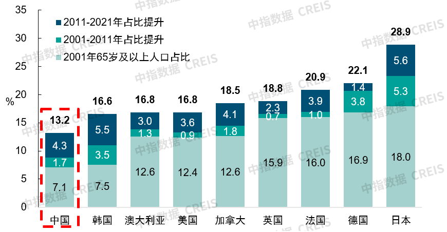 一二线城市65岁以上人口占比多已超过10%,一线城市中上海老龄化程度最高;东三省及川渝区域65岁以上人口占比排全国前列。