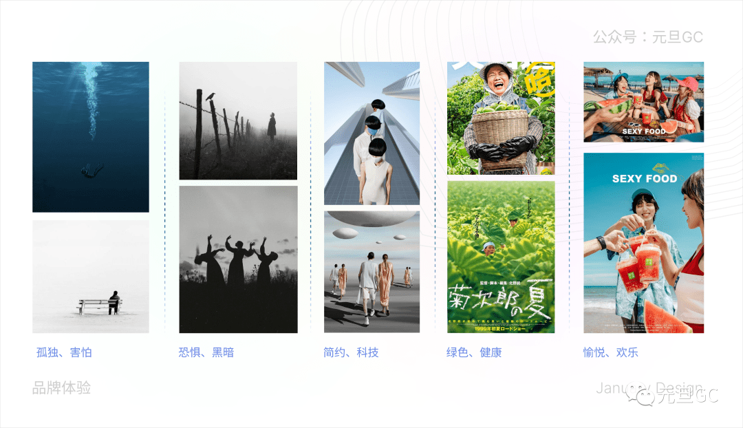 相信你看到下面几组图的时候能够明显的感受到每一组给你带来的不同情绪;这在海报设计中比较常见,除了品牌调性外,海报会根据产品,匹配相契合的设计风格来烘托画面所传达的目的。