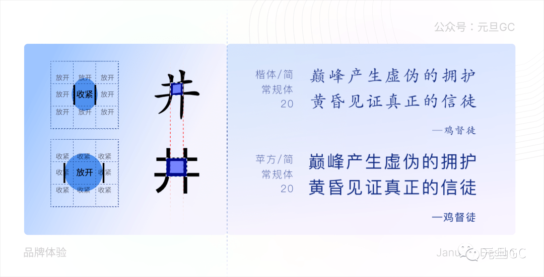 首先在字体的选择和使用上,选择结构简洁,细节量少的字体(屏幕受像素点的影响在常规的阅读字体中细节点闹一体验存在模糊细节丢失等情况)倾向于选择中宫扩张放开的字体(这能让字体在同等字号下更显的大,更能呈现现代的明亮感)。