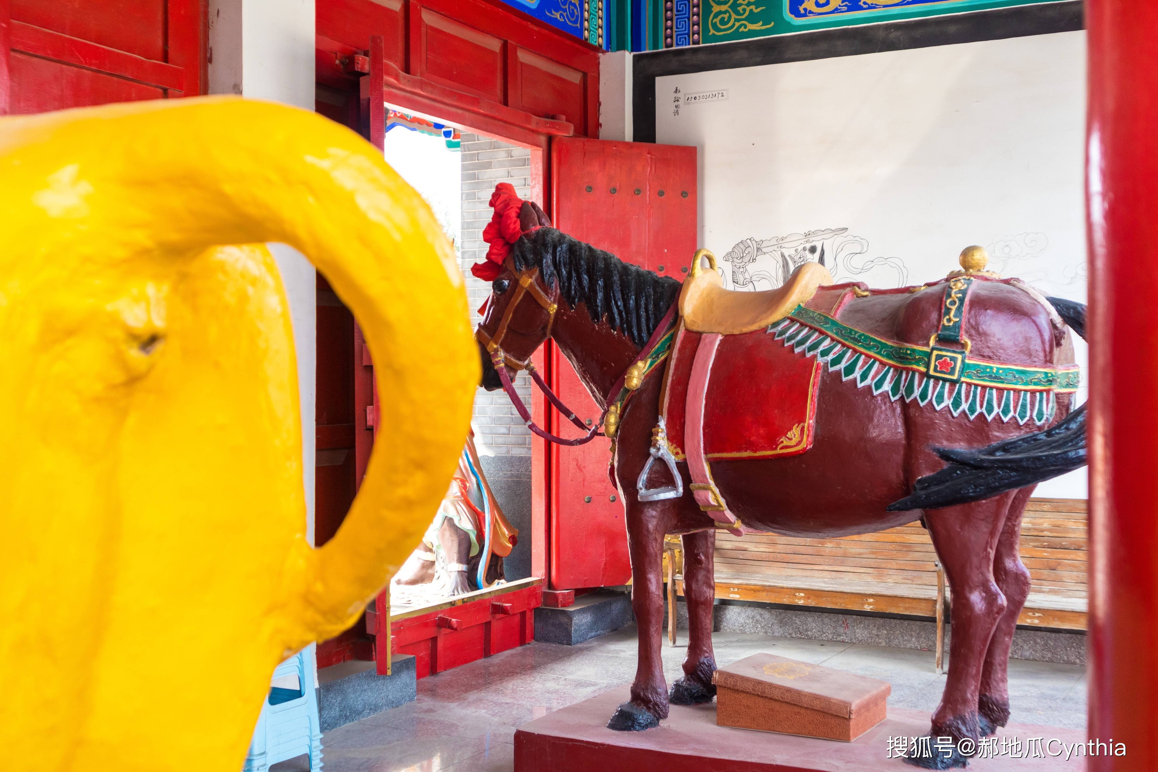 继续往里走,两侧是王母宫和泰山殿,从正门进入,里面有牛和马的雕像,这是因为什么呢?当时孙斌经常骑着独角牛巡视乡里, 老百姓为了祭祀他,因此每年扎独角牛祭祀孙膑是必不可少的流程,每年正月十四烧大牛的习俗,更是传承了下来。