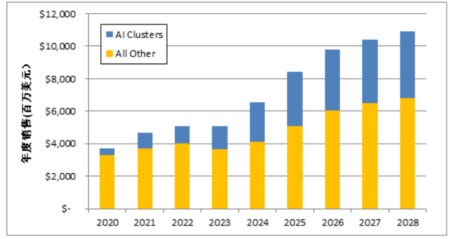 未来 5 年,用于AI 应用的光模块的总销售额将达到176 亿美元,同期所有其他应用光模块将有 285 亿美元的销售收入。