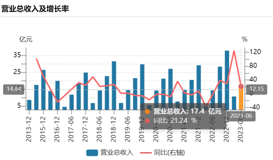 营业总收入约17.40亿元,同比增长21.24%;
