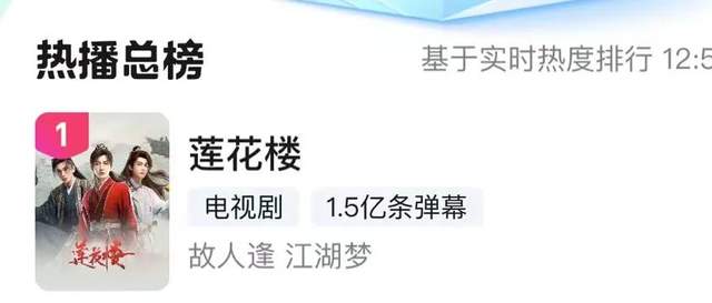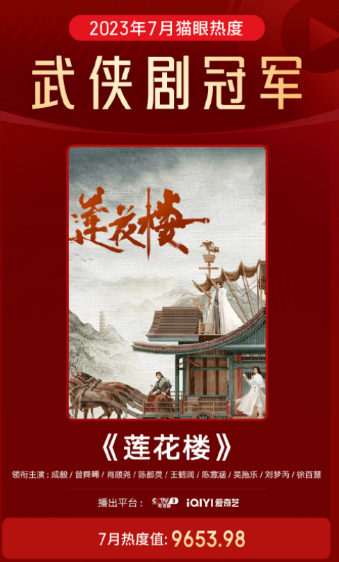 《莲花楼》最高热度10118,成为爱奇艺2023年第三部热度破万的剧集,也成功跻身爱奇艺爆款剧十强之列。