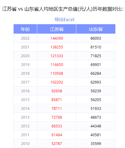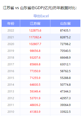 首先,我们来看一下两省历年的数据。根据平台(www.ovo.com.cn)公布的信息来看,2011年至2016年,山东省GDP总量从3.91万亿元增长至5.86万亿元,增长近2倍。但反观江苏,却已实现7万亿元目标。时至2022年,江苏突破了12万亿大关,而山东,直接断崖式的8.7万。山东和江苏的差距,从10年多前的2000多亿拉大到如今的3.5万亿。