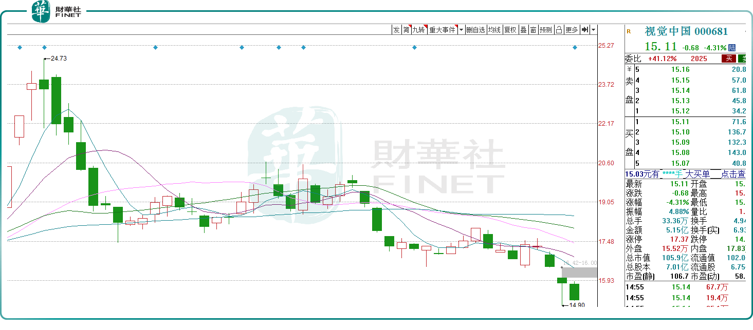 业绩录得增长,然而股价并不给面子,8月18日,视觉中国继续下挫4.31%,报收15.11元/股,延续近几日的羸弱走势,近三个交易日公司累计下跌12.51%,市值蒸发超15亿元。