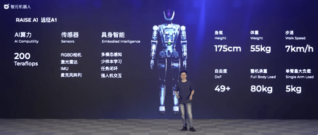 智元公司联合创始人彭志辉在演讲中表示:“远征A1是智元的第一代通用型具身智能机器人,基于创始团队在机器人和 Al 行业多年的研发积累所打造,这款机器人未来将可以在各种复杂场景下自主完成移动和操作任务。我们致力于将先进的机器人和 Al 技术与人类生活以及生产制造紧密结合,未来让机器人成为人类的得力助手。”