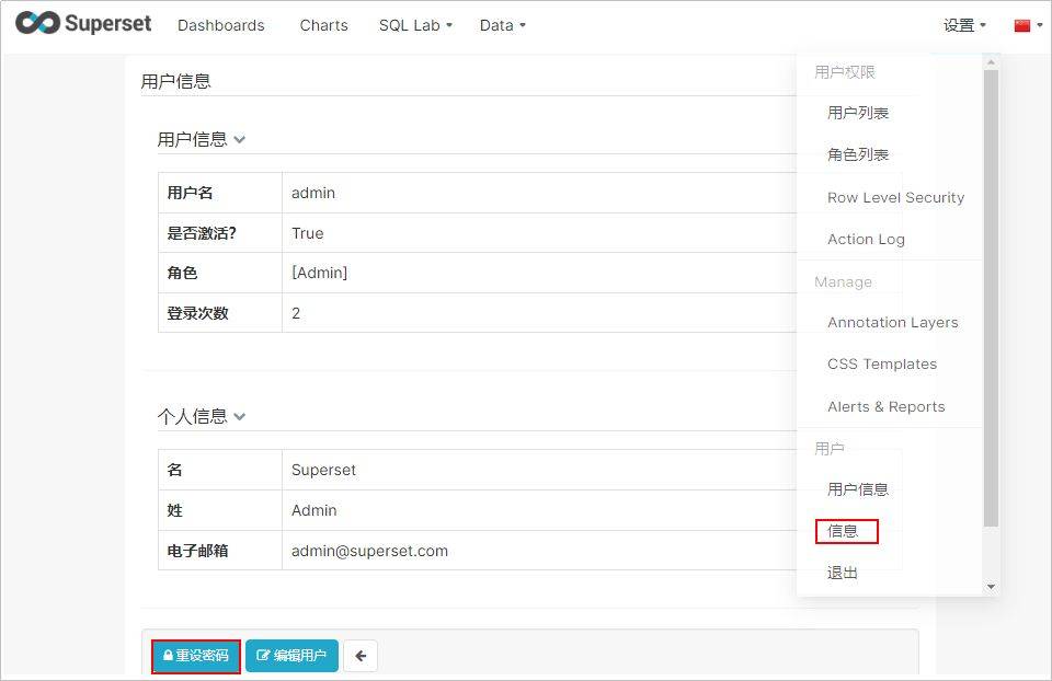 本节介绍了Superset的部分基本操作,更多指导详见官方文档。