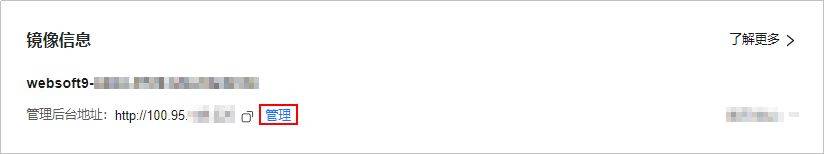 2.在服务器“概览”页“镜像信息”中,单击“管理”登录管理界面。