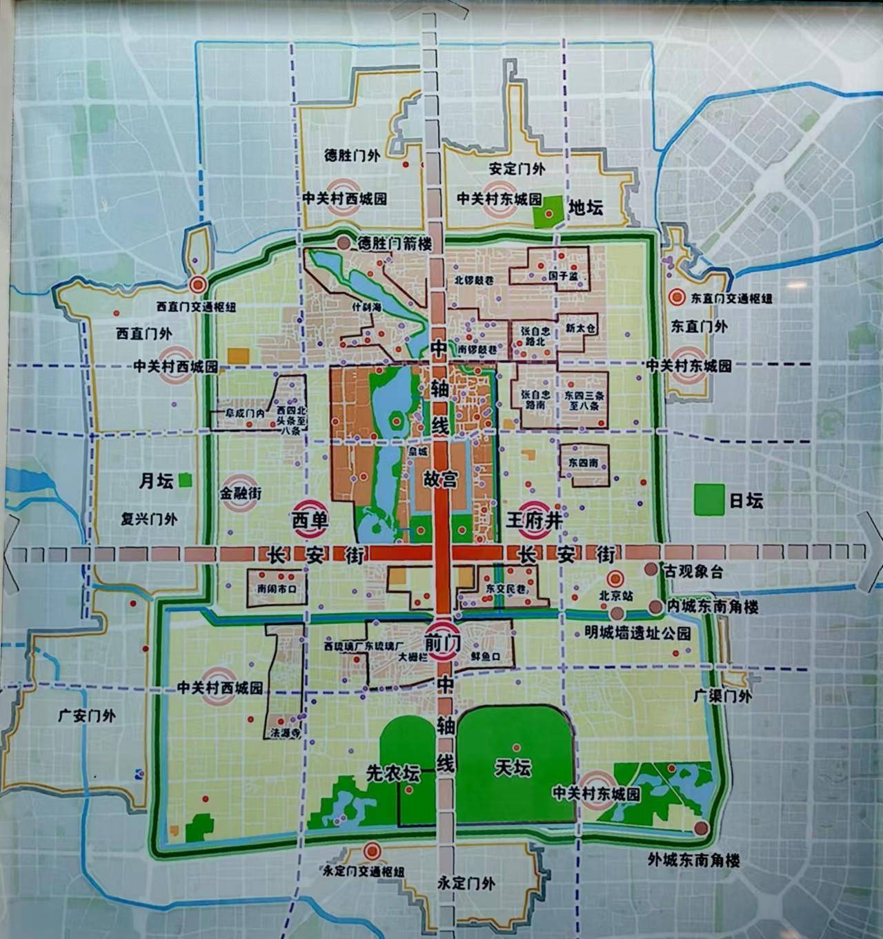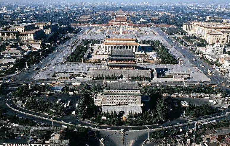 新中国成立后,为了有效地利用这座古老的都城作为首都功能,只能把在民国时期,被打了很多洞的都城旧城墙给拆掉了,建立内环线,把东西两侧的政府机构和商业设施有效快速地连接了起来,但是,由于周围有很多古建筑,只能在上面修建内2环路,交叉路口使用红路灯,地下修建环形地铁2号线,在天安门城楼前,地上修建东西走向的长安街,地下修建了地铁一号线,并且在长安街沿线建造了很多政府新部门,不再使用封建王朝时期的朝廷官署衙门,把原来官署衙门推倒了,从新建成了,现在看到的天安门广场,广场东侧沿用了原来的文职功能,建造了后来的国家博物馆,广场西侧沿用了原来的武职功能,建成了人民大会堂。广场的中心位置,就是原来明朝和清朝时期的国门,推倒了,建成了象征新中国政府是人民做主的---人民英雄纪念碑。