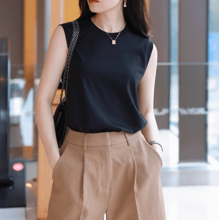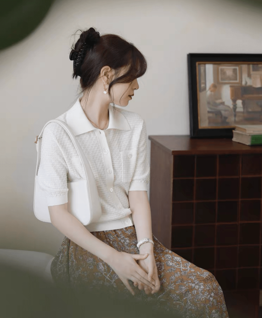 对于咱们打工族来说,上半身可以穿比较经典简约的款式,小个子姐妹要注意领口选有一定露肤度的,看起来更轻盈显高。