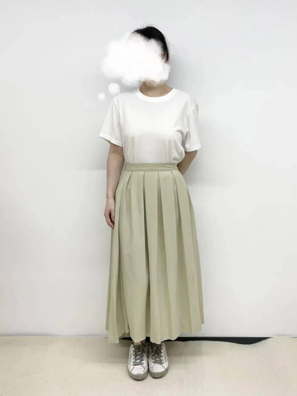 切记最好避开从腰头开始的大宽褶裙,容易炸褶显胯宽。