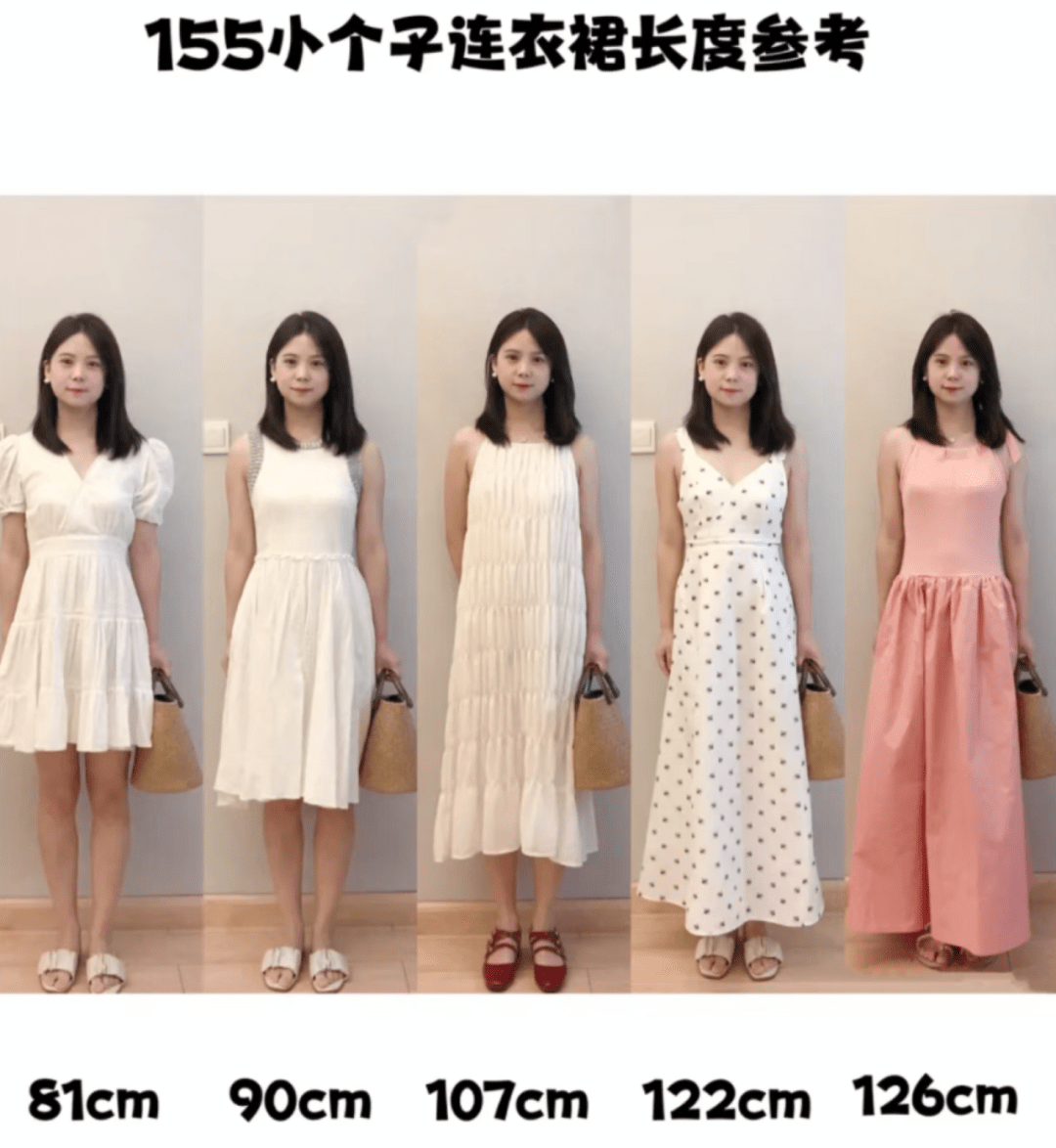 也有很多人说过“155cm穿107cm的长裙最显高”,小个子姐妹可以根据自己身高相应➕➖去尝试。