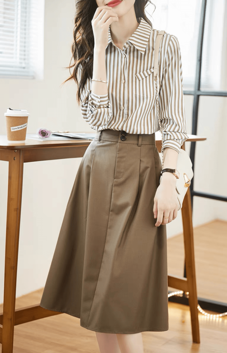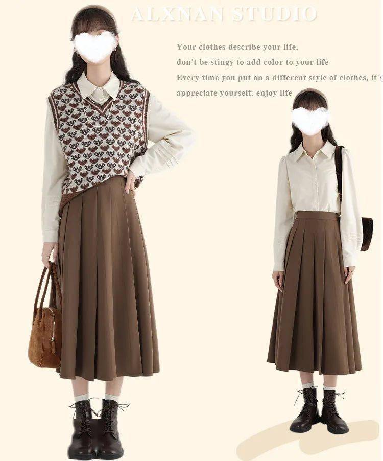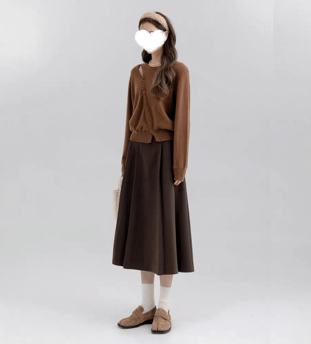 今年秋天比较流行「美拉德穿搭」,以棕咖系为主进行叠搭的穿法也很适合半身裙,上身有很浓郁的秋日氛围感。