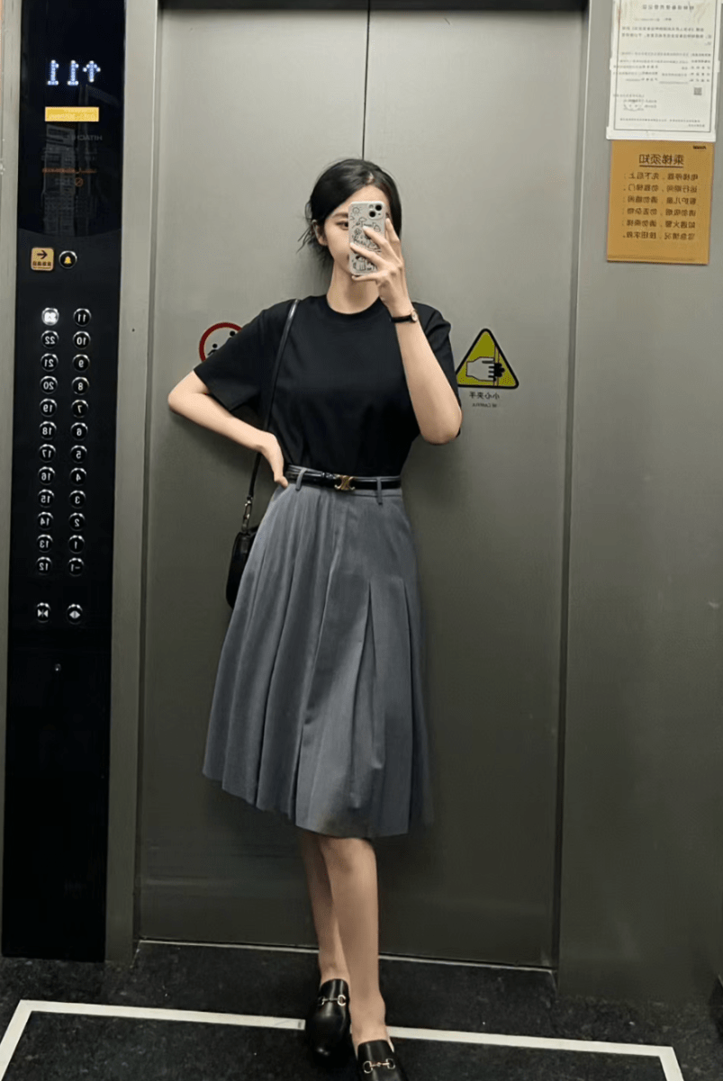 除了云云那条休闲小白裙之外,她姐又挑了一条偏甜美的奶油小白裙,以及适合普通身材的松紧腰小黑裙,还有简约大气的深灰通勤款~