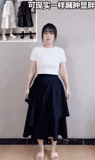 她姐建议大家第一个舍弃蛋糕裙,因为层层叠叠的设计会模糊下半身线条,容易显臃肿,对于普通身材很不友好。