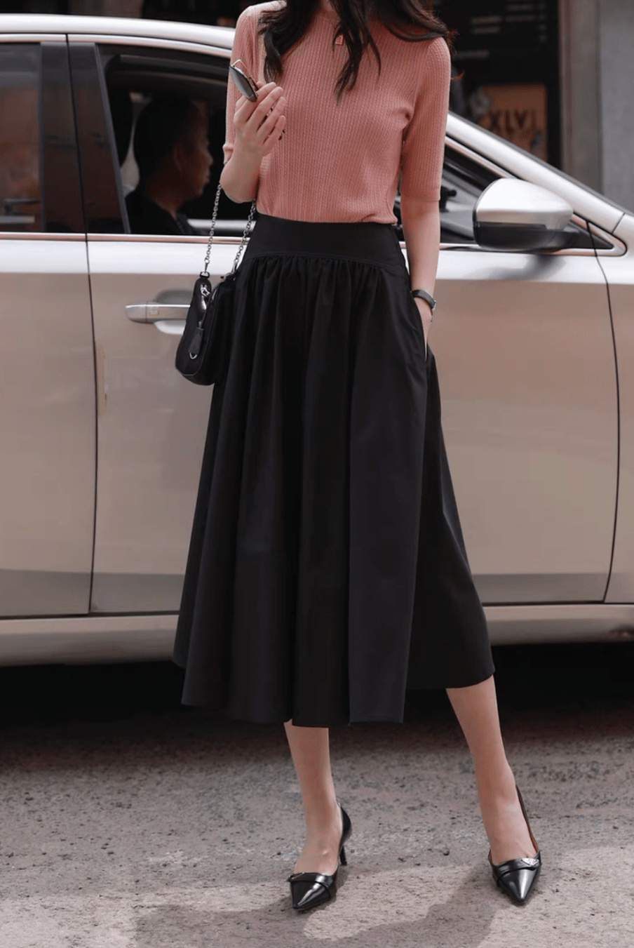 最不挑身材的版型是「微A伞裙」的设计,对身材的包容度最高,既能完美藏肉又不会踩雷显胖。
