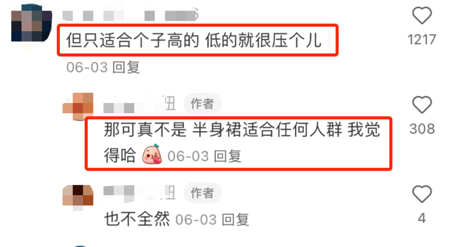 有身高155cm的博主实测过,裙长103cm-107cm都属于很显高的长度,刚好卡在小腿最细的位置,超过120的就别考虑了。