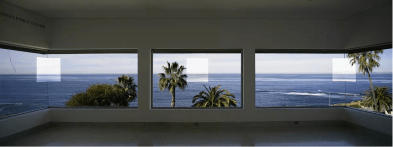 正是这样的观念启发了欧文,他的艺术创作之一,即是在圣地亚哥当代艺术博物馆的窗户上拆出了三个空间,使得博物馆向外部的光、景物和海风“敞开”。如此开辟的空间使得观众可以看到海岸全景并体验到“光的现象学”。由此,观众便不再以主客二分的方式“观赏”艺术作品,而是以“置身其中”的姿态“体验”作品。