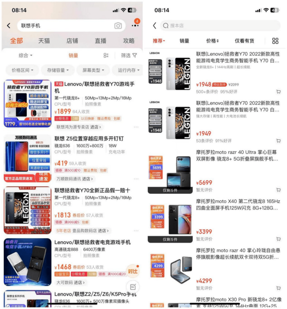 作为国内较早进入手机行业的厂商之一,智能手机时代,联想也曾先后推出乐 Phone、VIBE、乐檬、ZUK 、摩托罗拉、拯救者等多个手机品牌,但如今在国内市场上,联想的这些品牌不但早以被淹没在历史的长河中。而且就算目前仍在运营的部分品牌,在京东、淘宝等电商平台上销量依然惨淡。