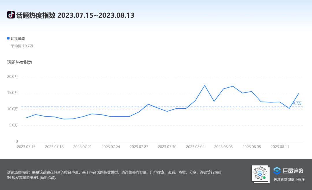 其三,赋予游戏社交属性,积极为玩家赋能社交体验。《地铁跑酷》重视游戏的社交属性,具有活跃的玩家生态。一方面,《地铁跑酷》积极推出和好友开黑等具有社交属性的玩法,吸引新玩家,留住旧玩家。据报道,仅今年1月,《地铁跑酷》内发送表情和对话的玩家已超30%,发送次数超8.7亿,对战总次数超过12.5亿次。高社交属性意味着玩家在游戏或产品中积累了社交资产,增加了沉没成本,从而降低了流失的可能性,助力《地铁跑酷》用户留存。另一方面,《地铁跑酷》通过引导玩家在各个平台二创内容分享玩法视频,实现社交裂变。今年7月,《地铁跑酷》开启“夏日共创计划”,先在Fanbook上发布任务,通过拆解爆款视频的基本特点等方法引导活跃用户有效创作,并通过道具奖励诱导用户二创和传播至其他平台,其中“不吃金币挑战”就是一个成功的案例。随着这一批视频的聚集,《地铁跑酷》的内容逐渐在抖音、小红书等多平台成为热门标签,又由于这些热门趋势符合平台规则而受到推荐,从而形成了相关内容话题的正向传播循环。据巨量算数所示,近一个月《地铁跑酷》在抖音话题热度指数均值高达10.7万。因此,《地铁跑酷》凭借社交平台上的“热门”再次“翻红”,成功通过游戏社交化提高玩家黏性,阻止玩家流失。