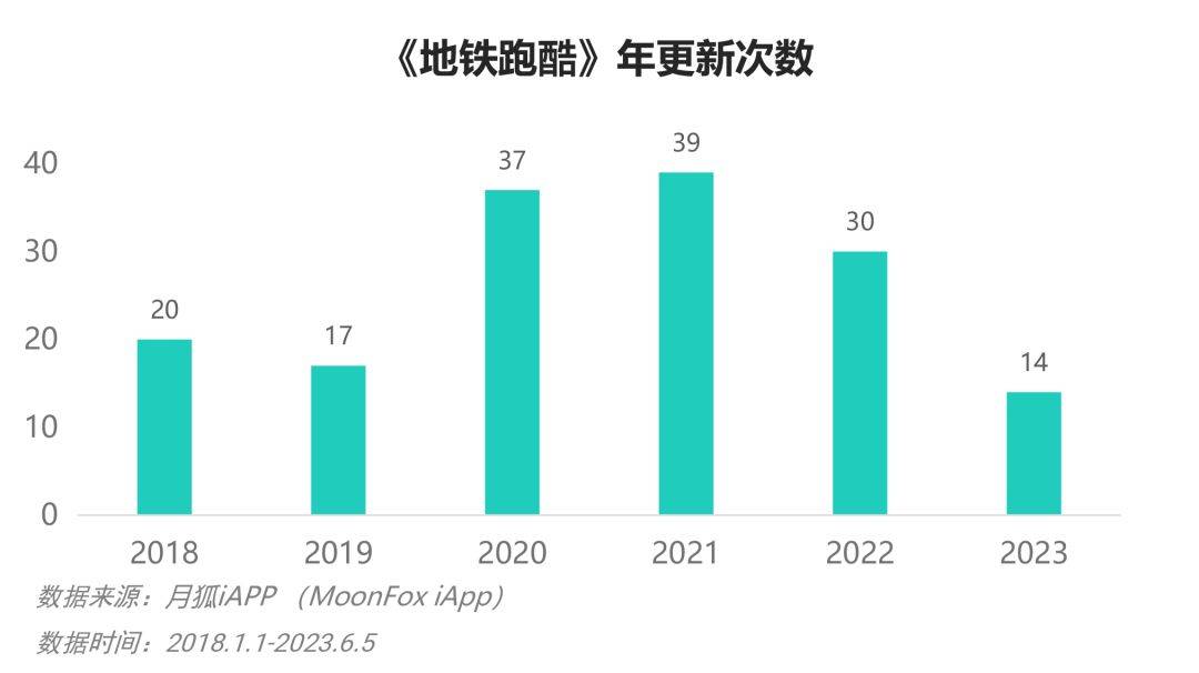 其一,保持游戏内核框架稳定,持续高频更新内容模式,为用户既带来新鲜感又不伤害“习惯”。一方面,《地铁跑酷》积极与时俱进,持续更新。在模式上,《地铁跑酷》持续加法,开启无尽、分数赛、道具赛等多样模式;在内容上,从2013年起,《地铁跑酷》根据各地特色,三个月一更新铁轨城市,带玩家“周游世界”,采用现实主题激发全球玩家的好奇心;与奥特曼等大量IP跨界联动,持续涌现新元素,极大地保持用户的新鲜感和活跃度。在七麦数据公布的《2021年全球各国家/地区AppStore不同分类游戏的年平均更新次数》中,竞速类游戏更新达标线最低,仅2.4次/年。而据月狐iAPP所示,《地铁跑酷》年均更新28.5次,即月均更新超2次,远超平均水平。其中,在2021年更新次数高达39次,月均更新超3次。