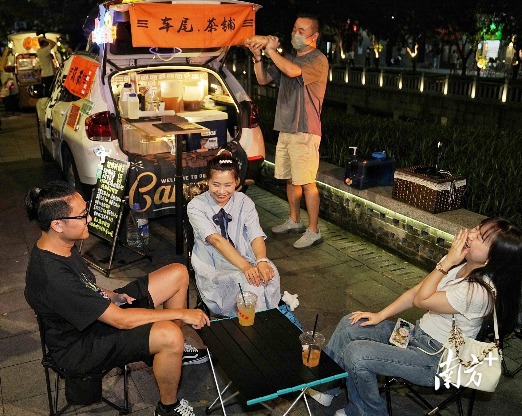 作为第一批“国家级夜间文化和旅游消费集聚区”,如今的北京路商圈,摊档夜市已变成常态化集市,尤其是在暑假期间,更多年轻人、外地游客来到这里,或摆摊或“打卡”。一位车尾箱集市的主办人员说,目前正策划开展更多主题活动,打造“新西湖路灯光夜市”。