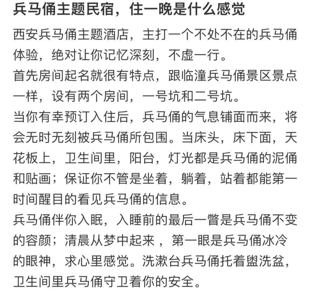 想想秦始皇躺地下也是这么天天被盯着,果然是帝王的待遇没错了!赶快转发分享右下角,一起来感受一下特色酒店能有多特色!