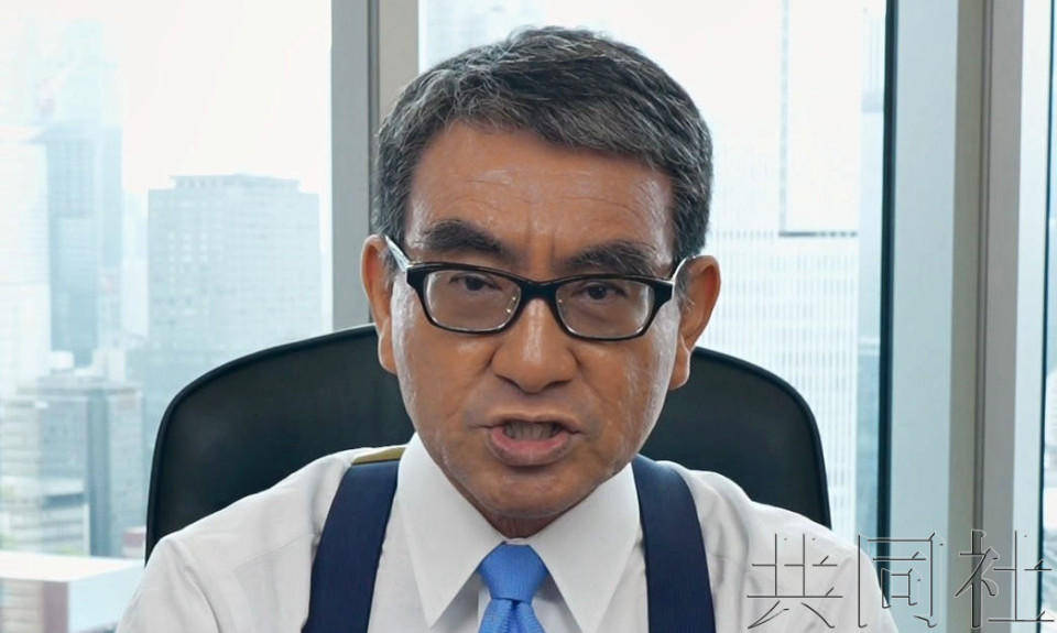 15日上午,日本数字化担当河野太郎在线举行记者会。