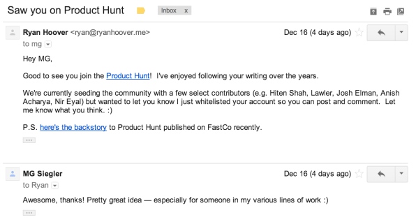 一旦我们确定了影响者,Nathan 或我自己会发送个人电子邮件,邀请他们参与并链接到 PandoDaily 或 Fast Company 的文章,以讲述我们的故事。虽然这是一个手动过程,但是这是一种有效的方式,可以招募优质的贡献者,并为未来的反馈打开沟通渠道。— Ryan Hoover