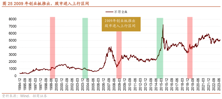 2009年创业板推出,3月31日《首次公开发行股票并在创业板上市管理暂行办法》公布,5月1日开始正式施行。同年10月,创业板正式开板。为了配合创业板的推出,资本市场再次被提到了新的高度,2009年开始,一系列针对资本市场的积极表述接连出台,大幅提振了股市信心。