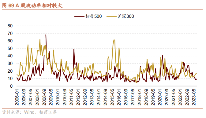 对比A股和美股的估值,可以看出,A股估值的波动明显超过美股。2006年以来,美股(标普500)估值的年化波动幅度基本在15%左右。但相比之下,A股估值(沪深300)出现大幅波动更加频繁。另外,如果以8月10日收盘价计算,在整体法下A股和美股的市盈率分别为11.3倍和22.2倍,在中值法下,A股与美股的市盈率分别为22.2和22.9倍,两种方法下A股估值差距大,而美股两种方法的估值则比较接近,这进一步说明A股估值波动比较大,进而容易造成市场的大幅波动。