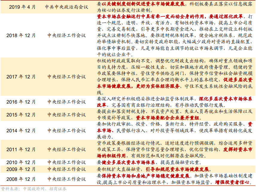 政府对于资本市场始终支持,但是支持的基调上,大概每隔5年就会有加大力度推动资本市场,呈现周期出现的特征。