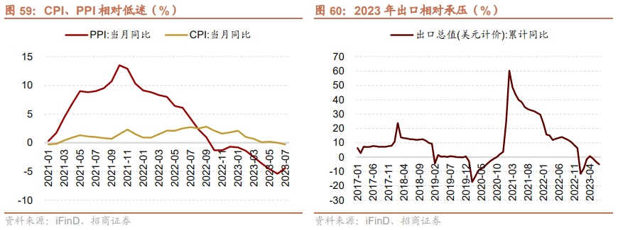 经济曲折式修复。7月24日政治局会议提到“疫情防控平稳转段后,经济恢复是一个波浪式发展、曲折式前进的过程”,明确了当前中国经济发展遇到的一些困难。具体来看,CPI、PPI从年初开始持续下行,PPI从7月开始已有企稳信号;在海外经济衰退预期下,出口承压;投资方面,房地产开发投资增速有所下滑,从销量数据上来看,商品房销量数据仍然较为低迷。