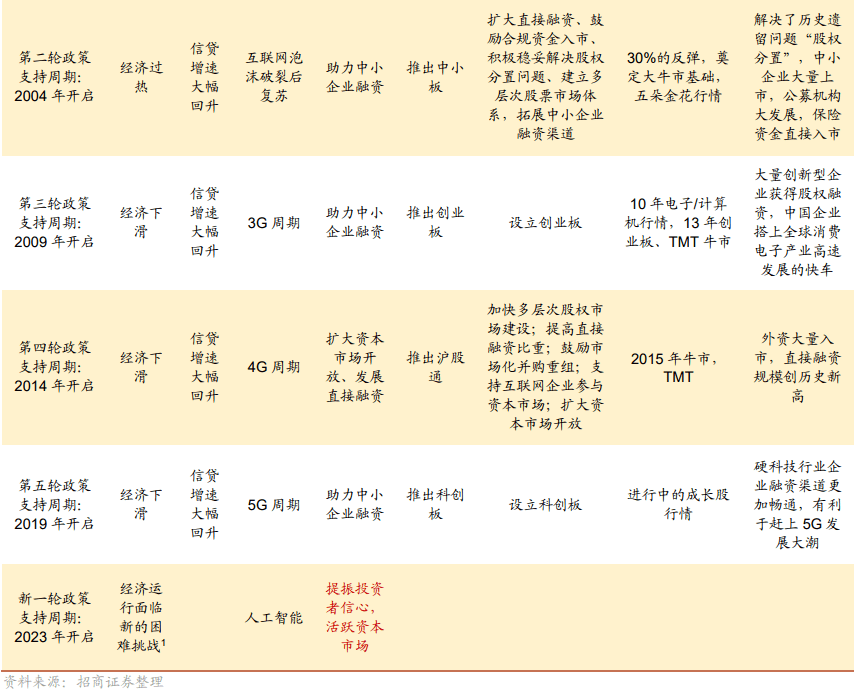 本文主要梳理了历史上五次政策支持发力周期的宏观、政策背景以及市场演绎情况,剖析了本次可能出现的政策支持发力周期的提出原因,研究了过往政策路径,以及展望了后续市场的演绎情况。