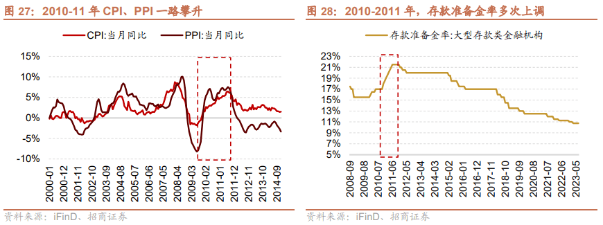 值得注意的是,由于2010年后前期“四万亿”计划不可避免的带来了一定程度的流动性过剩,治理通胀成为了2011年政府的首要任务。2010-2011年,存款准备金率被多次上调。在这样较为收紧的政策背景下,2011-2012年,A股呈盘整探底的行情。
