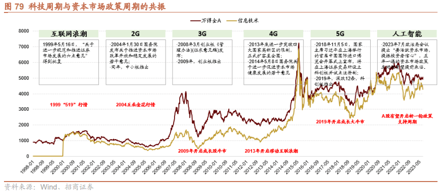 前文梳理了历次资本政策支持发力周期,具体来看会发现,每次政策支持周期开启时科技浪潮都处在酝酿或来临阶段: