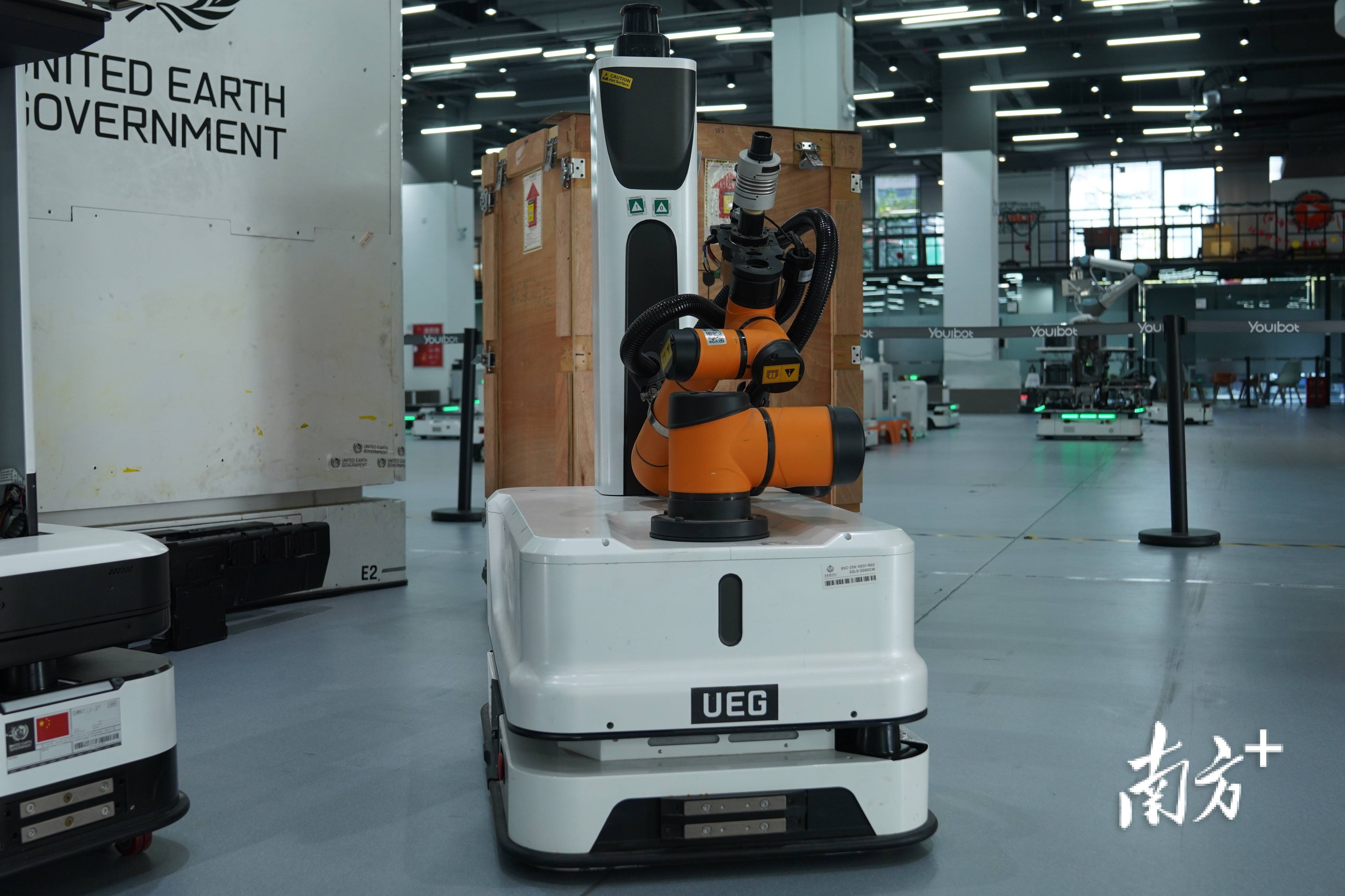 优艾智合研发的移动机器人在不同工序间自动转运。