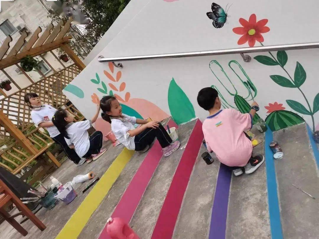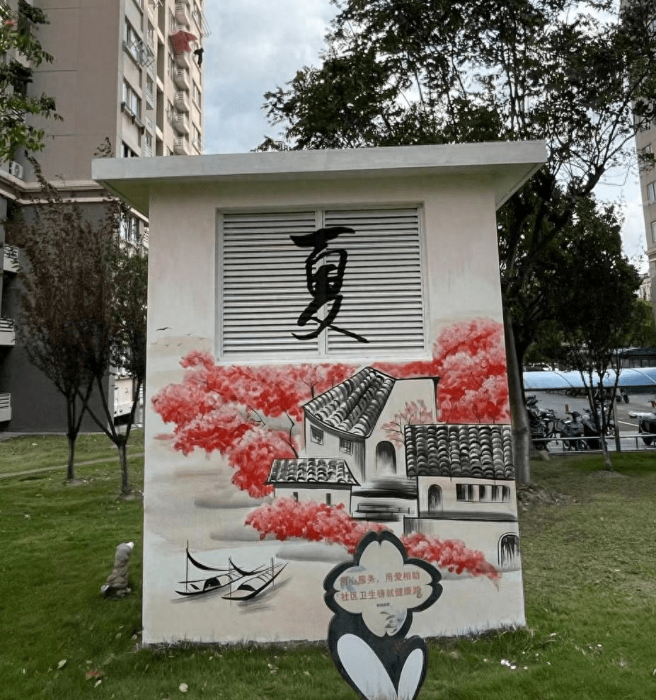 在陈桥居委的带领下,德锦苑组建起一支以有美术功底的大学生为主力的志愿者团队,对小区中央地下停车库出入口的墙面重新粉刷,在墙上描绘乡貌、乡情、美食风格图画内容。