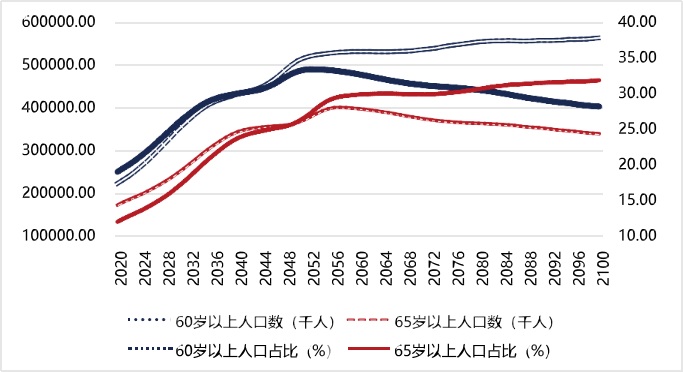 根据国家统计局的数据,我国老龄化人口占比持续上升,从2015年的9.3%增长至2022年的14.9%,并预计未来仍将继续增加。目前,全国60岁及以上老年人口已达2.8亿,占总人口的19.8%;65岁及以上老年人口达到2.1亿,占总人口的14.8%。这意味着我国已进入深度老龄化阶段,每5个中国人中就有1个是老年人。国家卫健委的测算显示,预计到2035年左右,60岁及以上老年人口将超过4亿,占总人口的比例将超过30%,进入重度老龄化阶段,这意味着每3.3个中国人中将有1个是老年人。