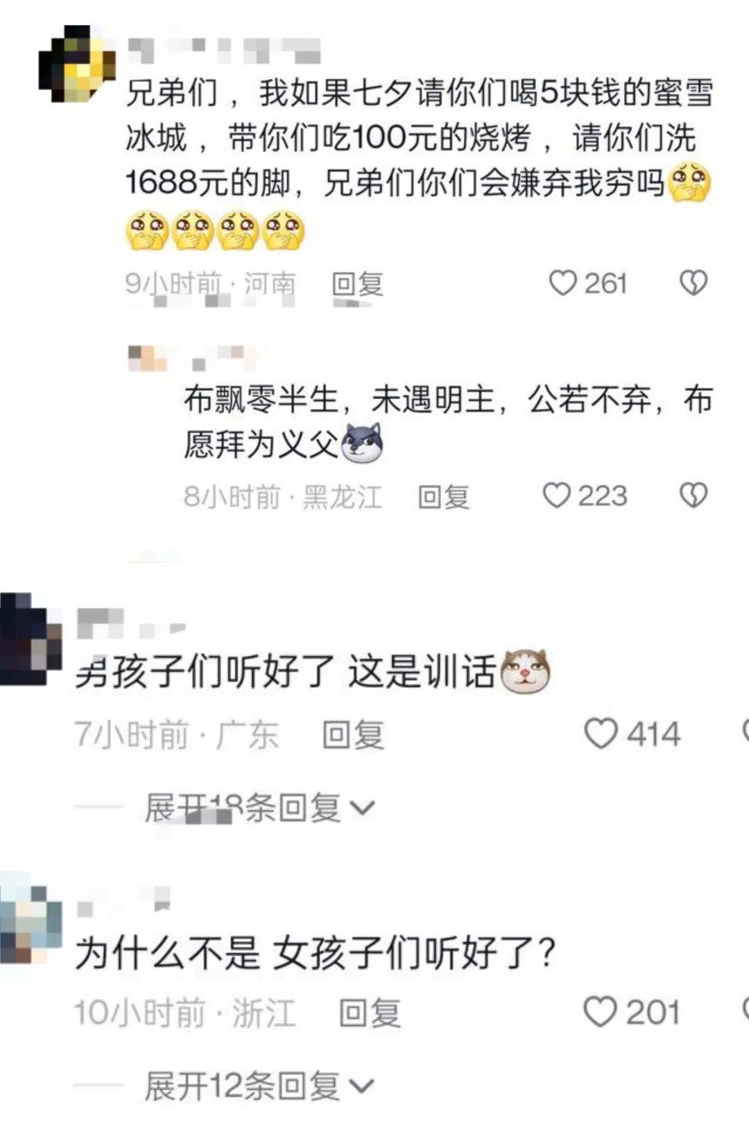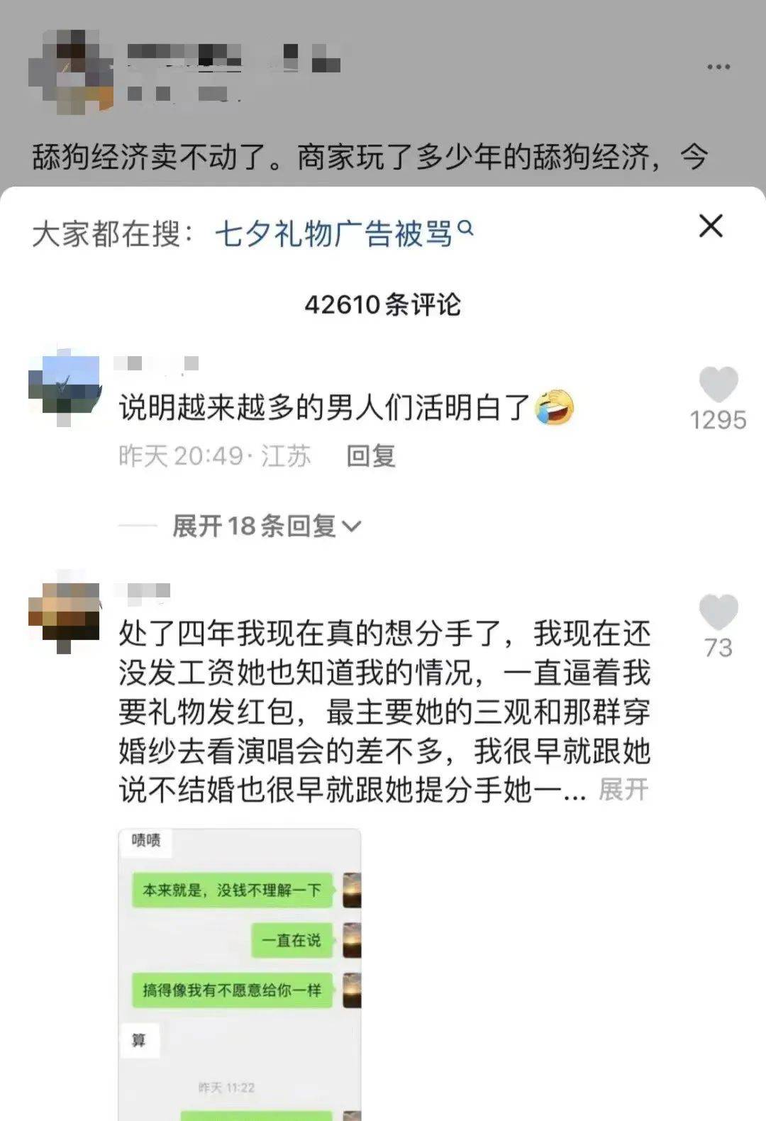 很多男生逐渐对七夕等节日失去热情,不愿意花钱去哄女孩子开心,有些甚至开始躺平,对恋爱、结婚等传统观念感到厌烦。