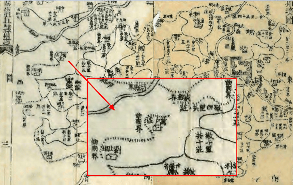 清朝《畿辅通志》舆图中“曲周县图”中馆陶县界附近村庄为司家寨、大庙,而“威县图”中馆陶县界附近村庄为万户、东留固,对照今天地图,发现这块区域存在于临西县境内。临西县在清朝为临清州境西部,乾隆《临清直隶州志》中的州境图西部,万户、东留固两个村庄均位于在一个标有“敬四里”的区域内,极有可能这个“敬四里”就是当时馆陶县的“寄庄地”所在,后来在某个时间内被整体并入到临清州境内。