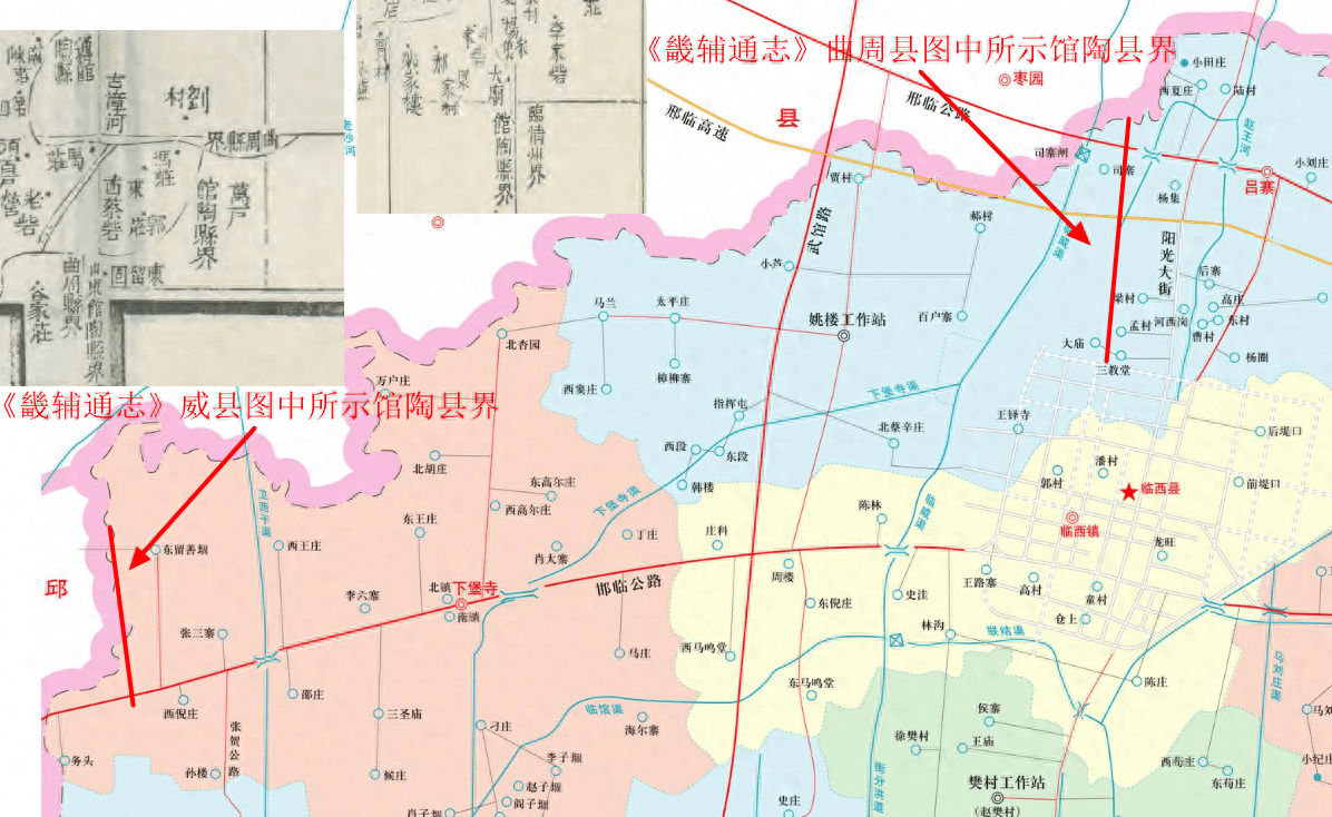 临西县西北角与《畿辅通志》中曲周县图、威县图中所示馆陶县界示意图